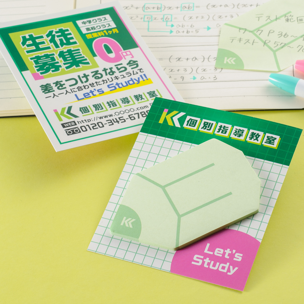 PR面積が広がる台紙付き!オリジナル形状の型抜きふせんで販促・記念品に最適!