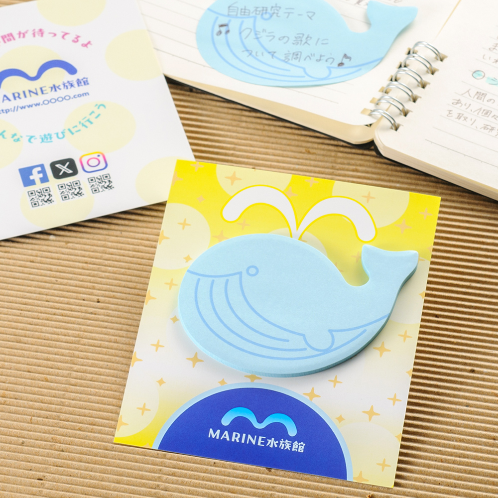 オリジナル形状ふせんデザイン可能!台紙付き型抜きふせんで名入れノベルティや販促グッズに最適!