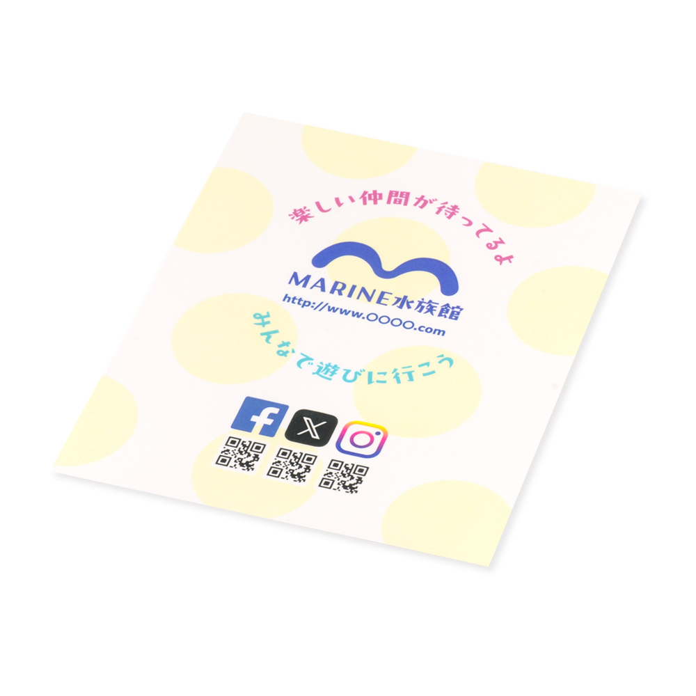 W85×H85mm以内でオリジナル形状ふせんが製作可能な台紙付きダイカットふせん。ふせん本体と台紙の両方にオリジナルデザインや名入れ印刷ができ、広告効果を高めます。企業ノベルティやイベント配布、記念品にも最適。短納期・小ロットにも柔軟に対応可能です。