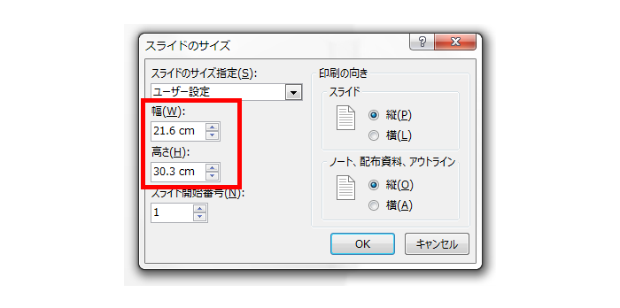 Officeでのサイズ設定の仕方は下記をご覧ください。